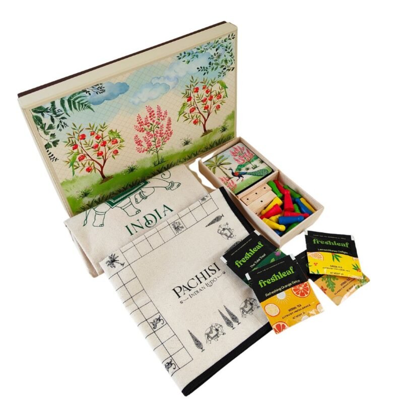 Celebrate the Joy of Indian games, along with your favourite cup of tea! Premium gift hamper inspired by Indian miniature paintings.