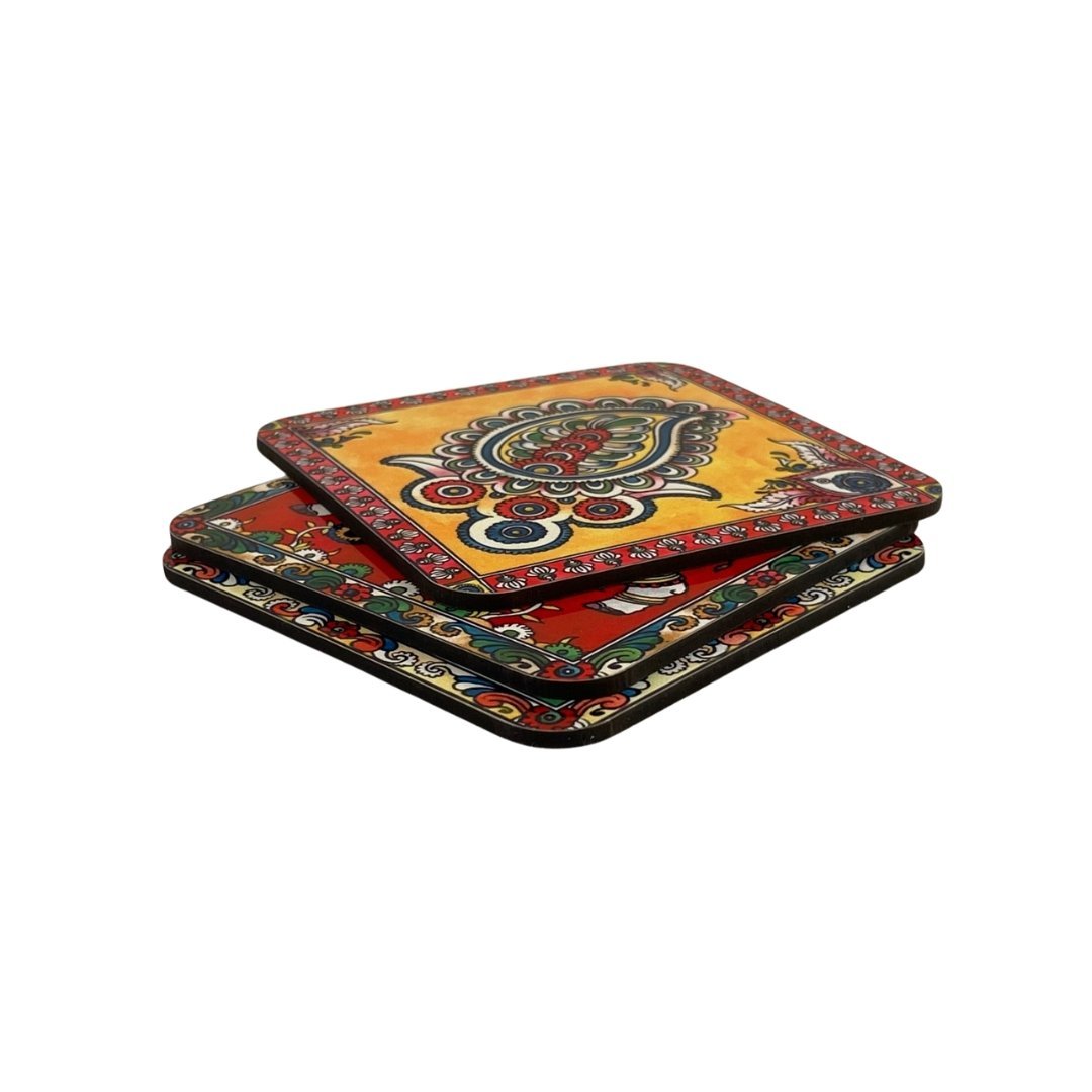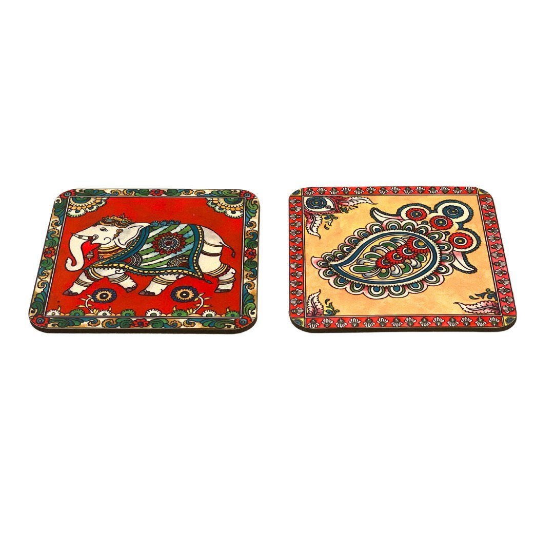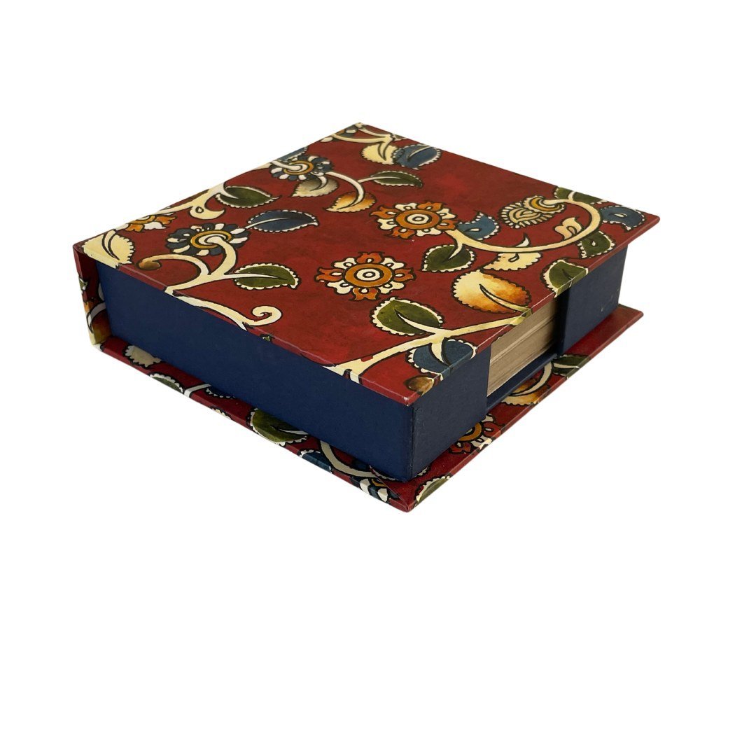 This gift set is inspired by the richness of Kalamkari, and is bound to make your workplace or home come to life with unusual elegance. A notebook to help you jot down your ideas and journal, a picture frame to forever cherish those happy moments, a memo box to help you write little notes, and aesthetically designed coasters to add some art to your tea time. The outer box makes a great place to collect keepsakes or store stationery.