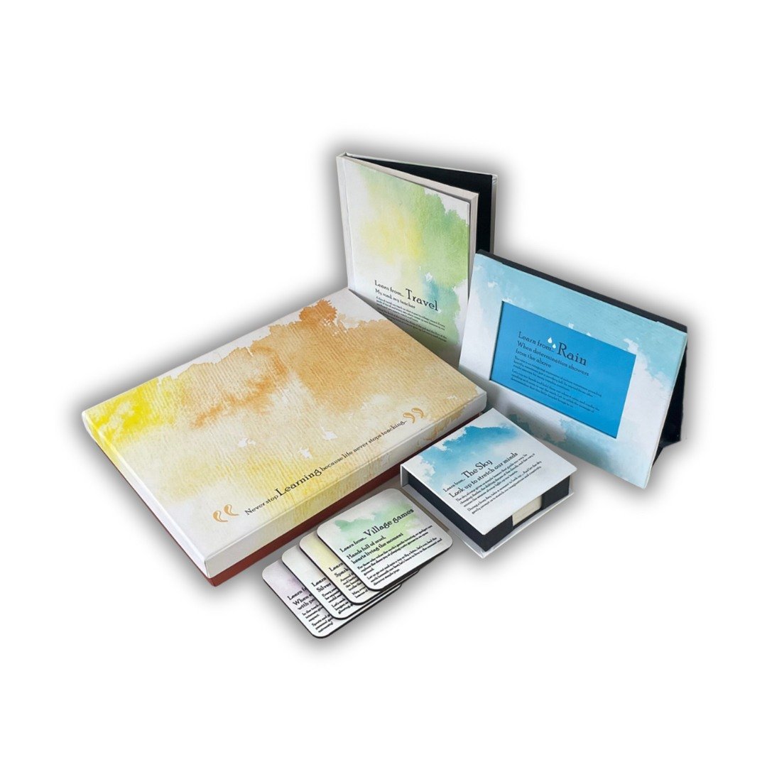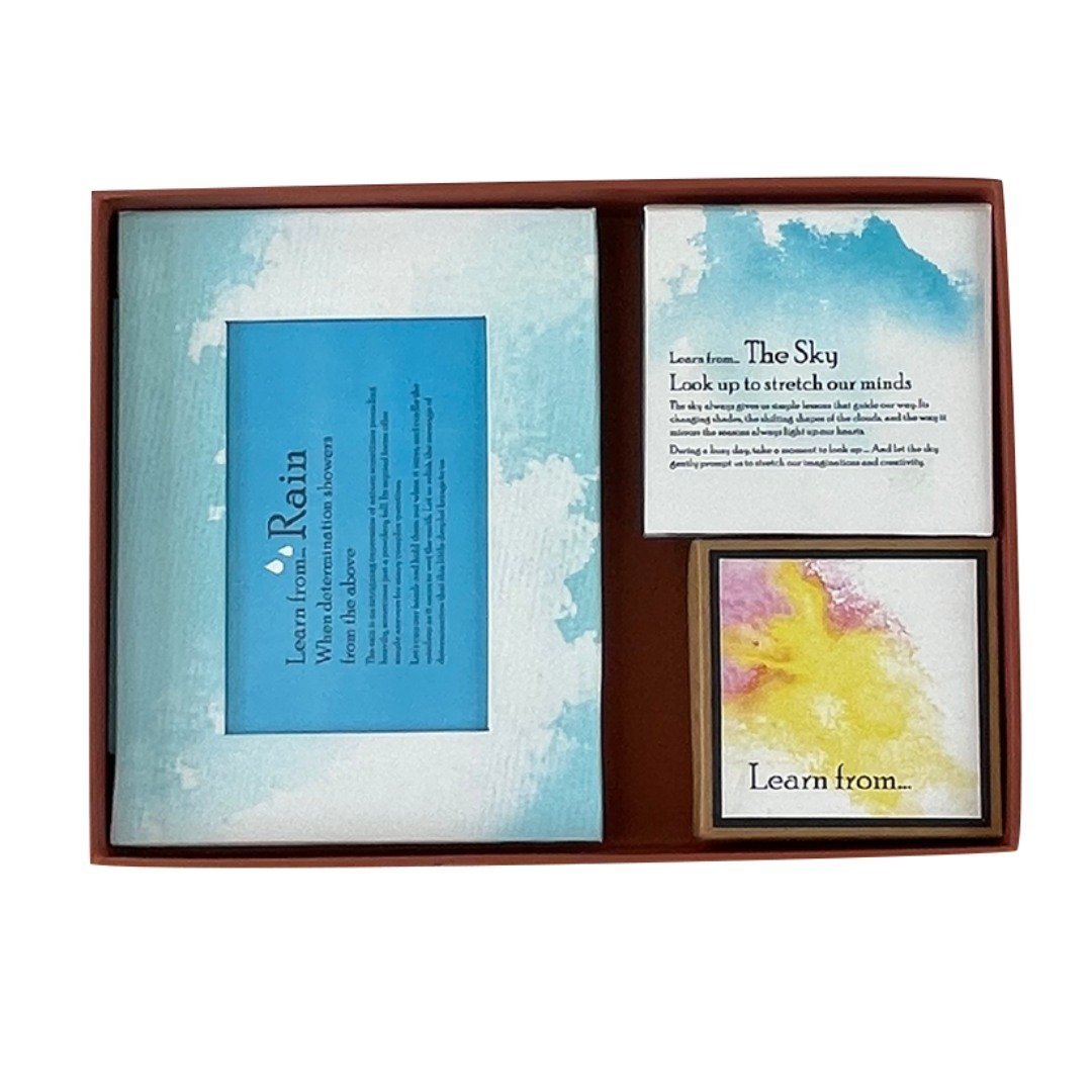 Never stop learning, because life never stops teaching. Splashed with a riot of watercolors this gift set revolves around the importance of being a lifelong learner. Our best lessons often come from the alleys of life that we walked through and the world around us and not just through conventional teaching.