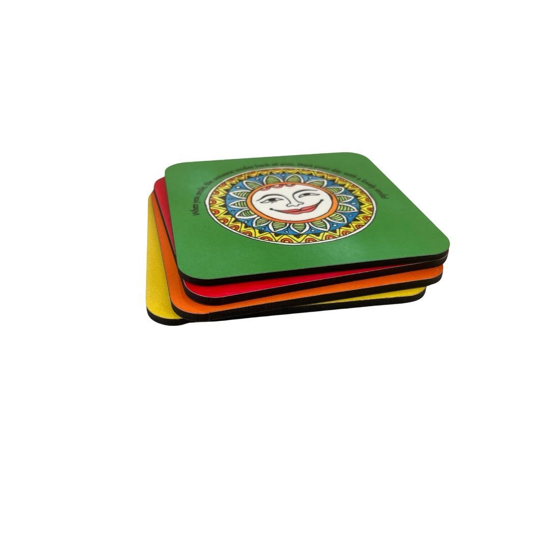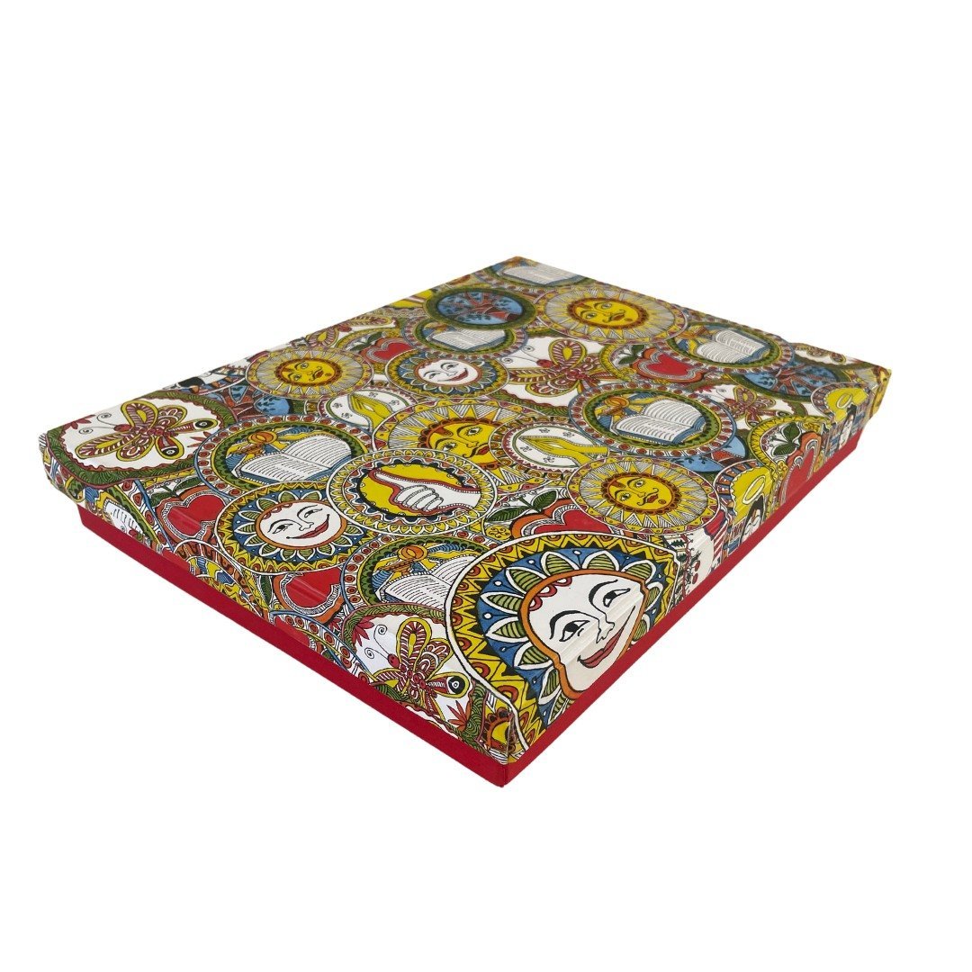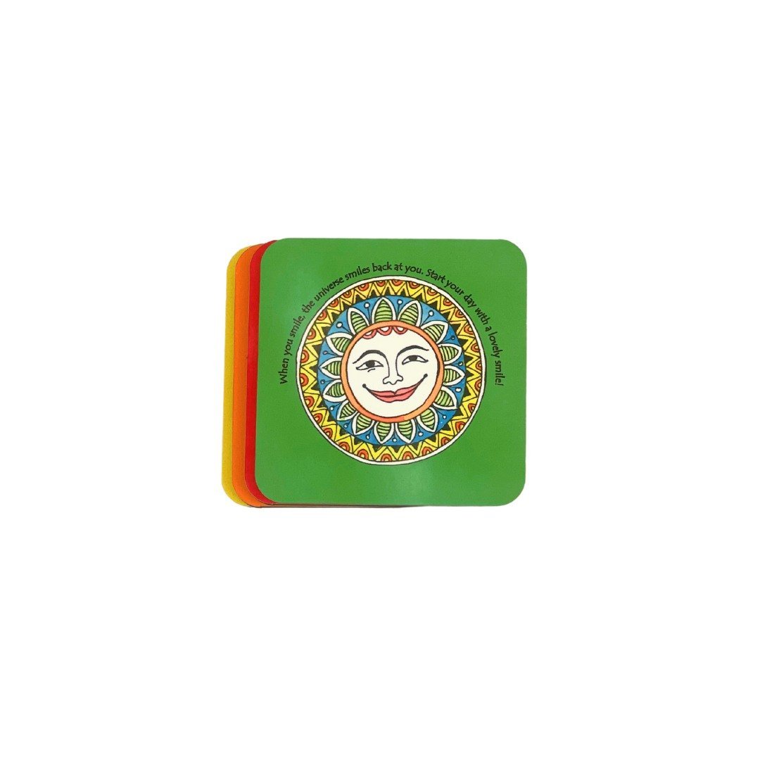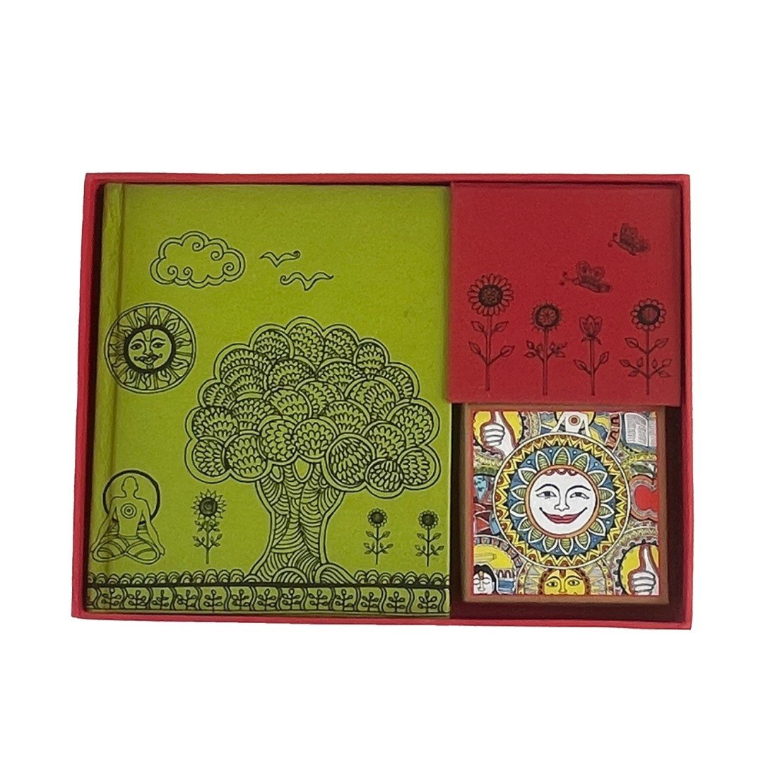 This Madhubani inspired gift set is the perfect gift for anyone who can do with some extra doses of joy in their lives, with its vibrant colors. A notebook to help you jot down your ideas and journal, a picture frame to forever cherish those happy moments, a memo box to help you write little notes and coasters with a positive thought to make your tea time a more reflective one. The outer box makes a great place to collect keepsakes or store stationery.