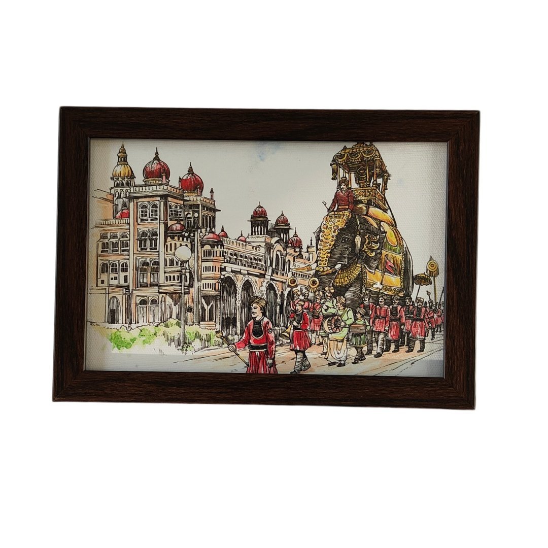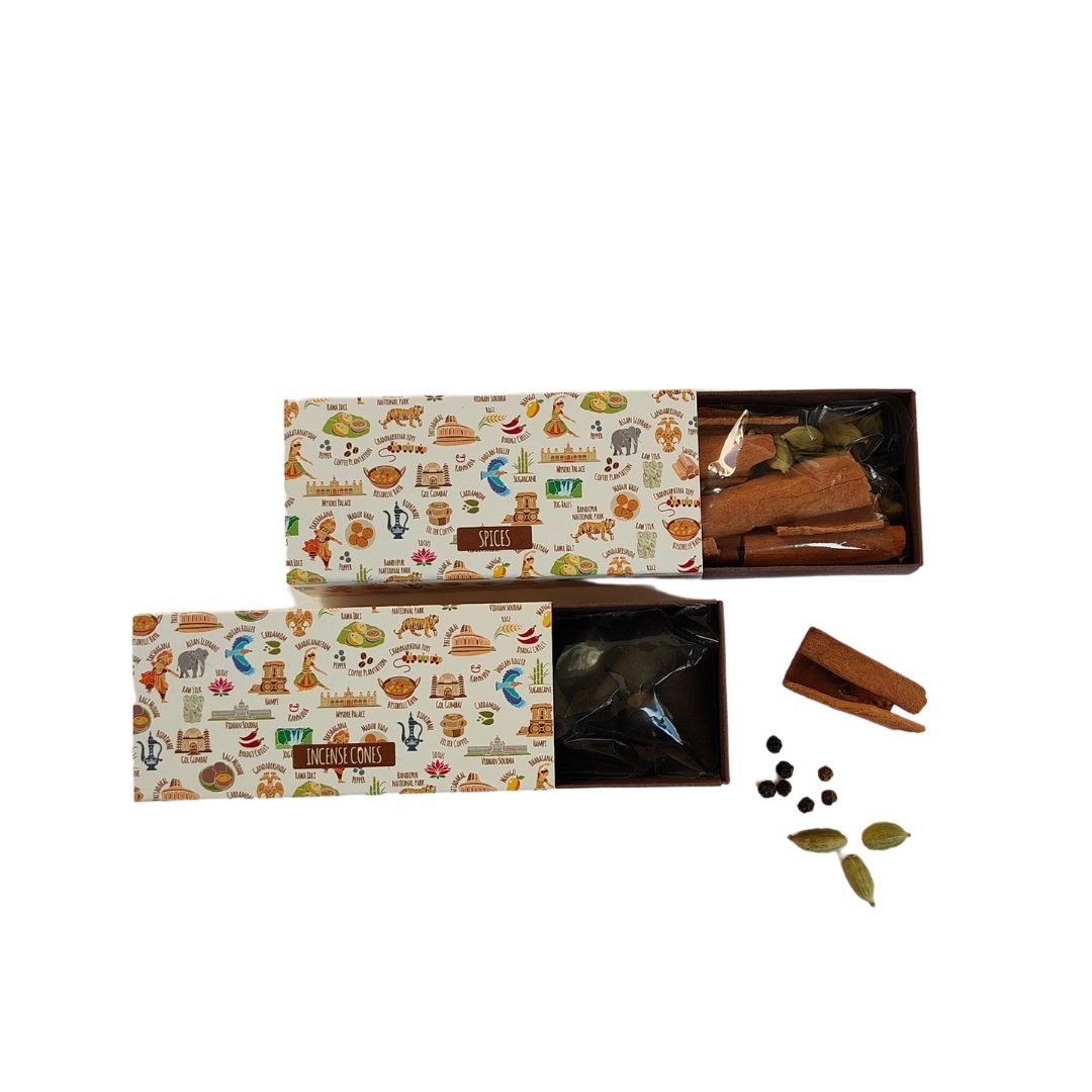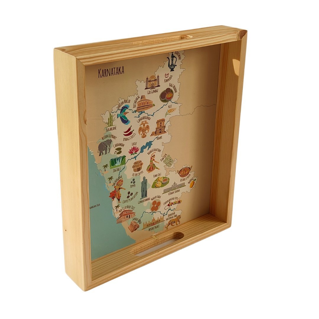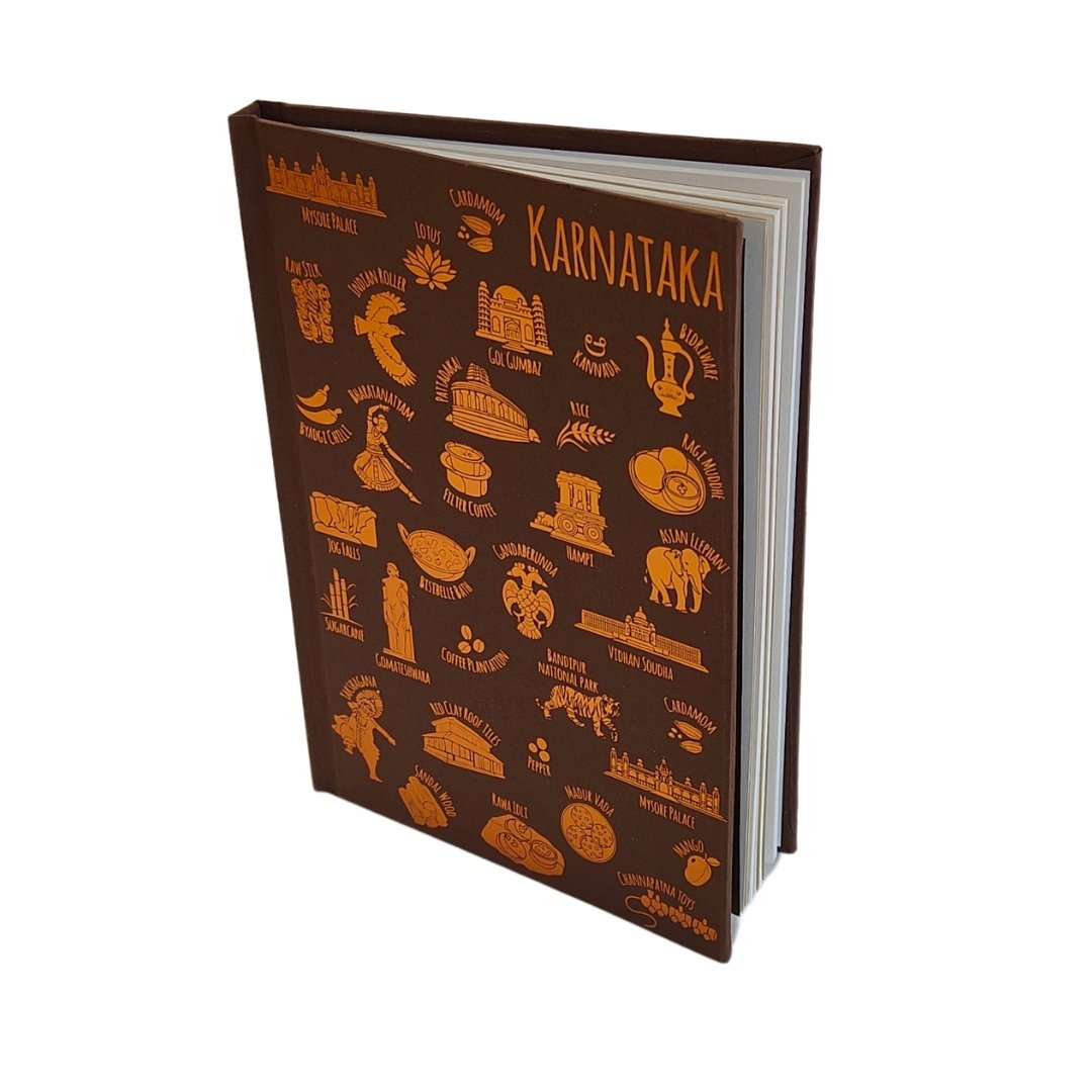 Contents include – Aromatic coffee, fragrant incense cones, handpicked spices, a beautifully crafted notebook with 3 interesting separators, and a canvas frame featuring a renowned landmark and wooden tray with the Karnataka map. A perfect gift that captures the spirit, artistry, and traditions of Karnataka.