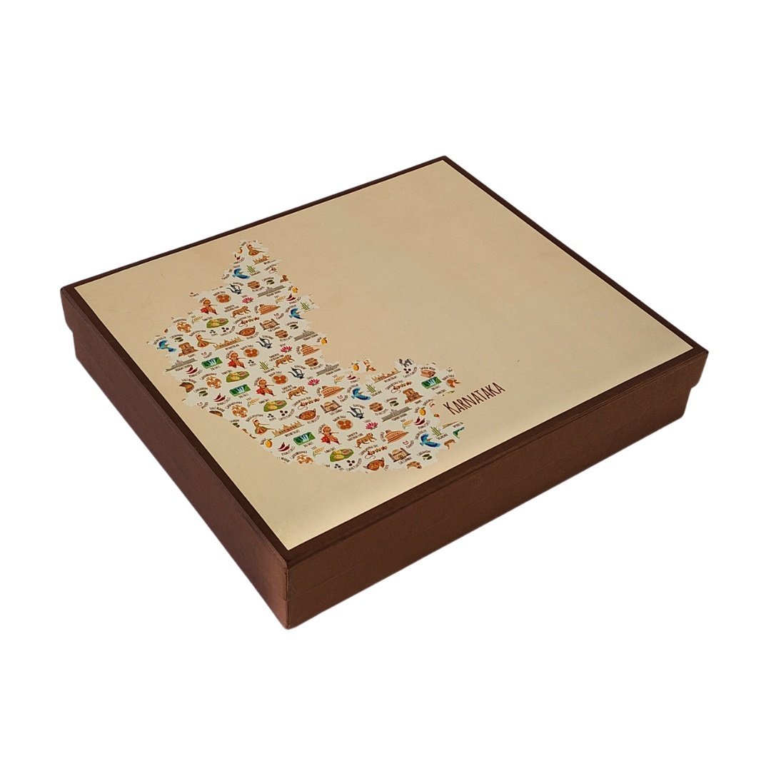 Experience the essence of Karnataka with our Treasure of Karnataka gift hamper, thoughtfully designed to showcase the state’s rich heritage. The box features iconic illustrations of Karnataka’s grandeur—from the majestic Vidhana Soudha and Hampi’s chariot to the vibrancy of Yakshagana and the charm of its waterfalls. The map of Karnataka on the box makes it an absolutely irresitible gift hamper and brings forth our love for the State. Inside, discover a curated selection of treasures guaranteed to bring delight to its recipient.